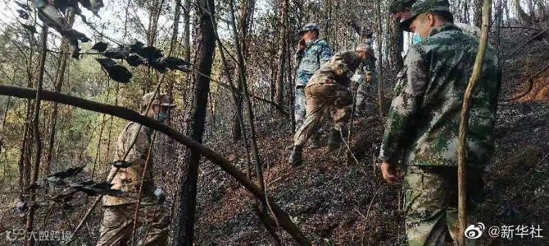 记者看到山坡上的一些树木有燃烧过的痕迹,一些飞机的残骸也能够被识别。目前,应急、消防等多方力量仍在进行搜救工作。