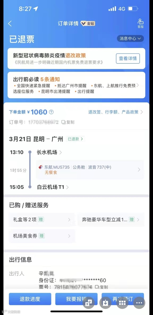 MU5735退票乘客: