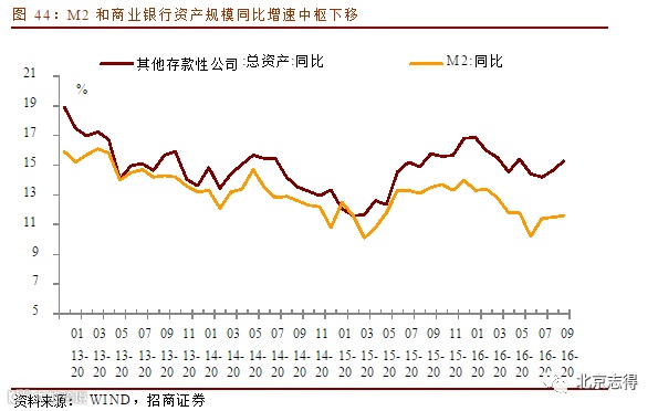 2016年前10个月,M2、广义信贷增速、其他存款性公司总资产同比增速中枢下移,而债券投资同比增速也出现放缓。M2同比增速从年初14.0%降至10月11.6%;广义信贷同比增速从年初22.2%降至20.0%;银行总资产同比增速从年初16.8%降至15.3%。MPA考核广义信贷增速,对计入M2的“股权及其他投资”影响最大。此前该部分规模扩张较快,反映银行的同业通道业务的快速增长,即银行把一些信贷资产通过信托投资计划、证券投资基金、证券公司资产管理计划、基金管理公司及子公司资产管理计划等方式,包装成为同业资产。主要的目的为了规避对于合意信贷规模、存贷比、不良率以及资本充足率的监管要求,而且同业存放风险权重仅为25%,资本金消耗减少,但这部分也会产生货币派生。MPA对广义信贷增速的制约,会极大的限制商业银行对于其他金融机构债权的同比增速,反映在信贷收支表中就是股权及其他投资增速放缓,该项亦是M2的重要分项。因此,制约该部分的增速,则M2、广义信贷增速和商业银行总资产规模增速同步放缓。