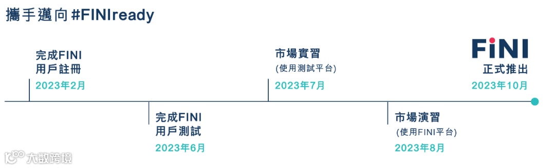 香港交易所已在本月中完成FINI 外部用户测试,下一步将分别于 7 月和 8 月安排市场实习及市场演习,模拟市场利用 FINI平台进行互动及处理首次公开招股结算的各项程序,为市场在10 月全面转用FINI平台进行最后准备工作。待市场准备就绪后,FINI的正式推出日期将于启用数星期前另行公布。