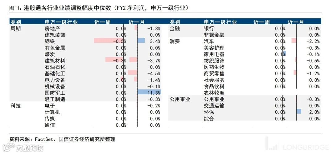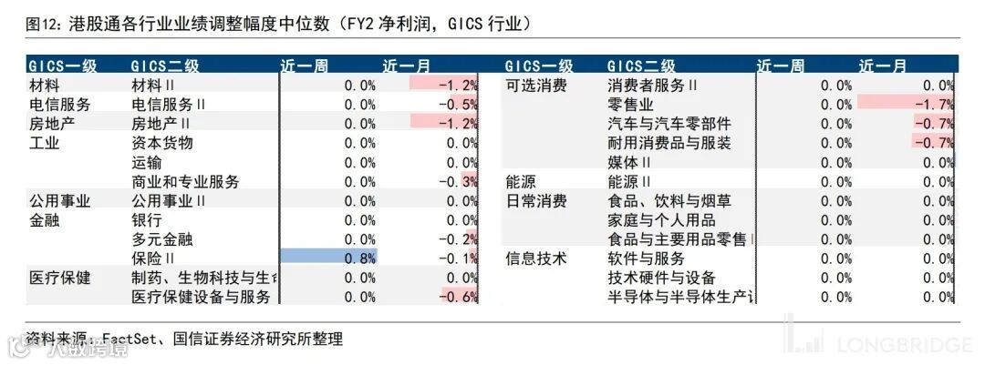 2023 年首周,港股通标的的业绩上调、下调公司数量比值接近 1:1;2022 年下半年, 港股始终呈现出业绩下调公司数量明显大于业绩上调公司数量的特征,上周数据或将成为港股基本面预期转好的一个拐点。