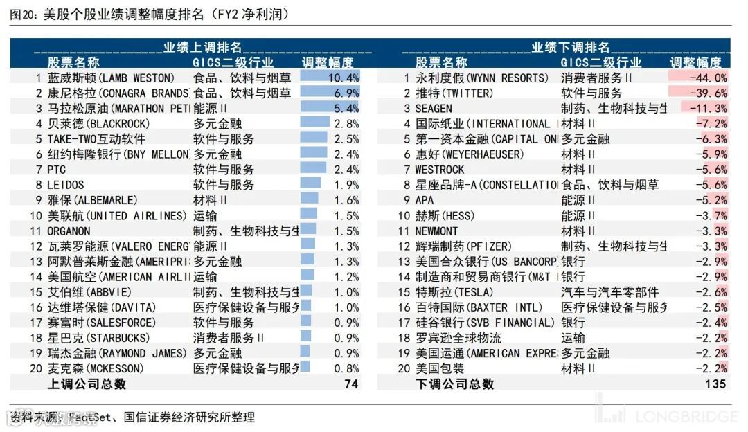 从历史上看, 自 2005 年以来,美股业绩下修速率最高的全球金融危机期间,美股业绩上修、下修公司的数量比值最高达到 2:5。据此判断,美股的业绩下修还有加速空间。