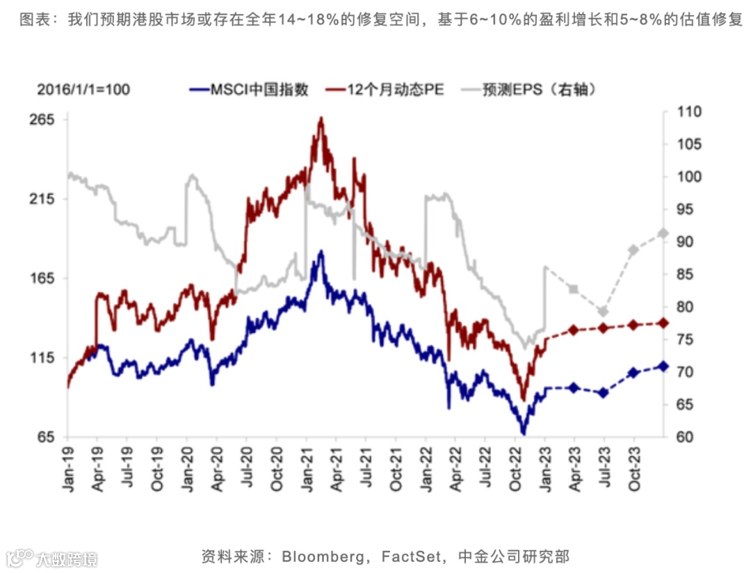 基准情形下,中金公司认为目前时点更类似2019年,更新测算港股市场较当前位置仍有14~18%的修复空间,基于6~10%的盈利增长和5~8%的估值修复。