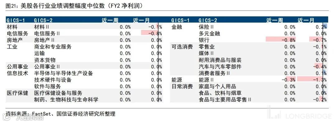 相比之下,上周美股标普 500 和纳斯达克 100 的成分股中,业绩上修、下修公司数量比值已经接近 1:2,这意味着美股的业绩下修在加速。