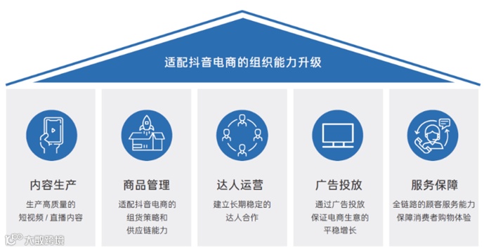 在经营理念上,基于自身的内容社区属性,抖音认为以内容激发消费者对商品的消费兴趣是抖音电商的核心价值,以内容驱动挖掘用户兴趣与消费需求的逻辑顺畅,商家可以从内容、商品、达人、广告、服务五大基础维度出发,升级电商团队组织能力。