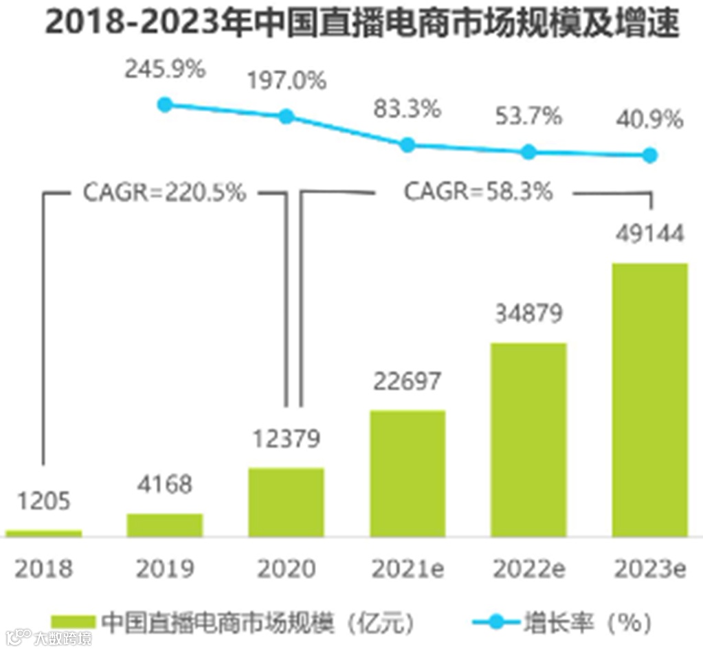 艾瑞咨询在《2021年中国直播电商行业研究报告》中预计,2021年中国直播电商市场规模为2.27万亿,到2023年有望达到4.91亿元。值得关注的是,直播电商万亿级的市场规模植根于对整个生态高效的价值提升,通过精细化运营与供应链渗透,深度挖掘用户消费价值和产业效率优化价值。