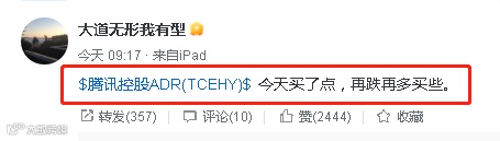 2021年8月4日,段永平在其雪球账号“大道无形我有型”中写道,“今天买了点腾讯控股,再跌再多买些。”