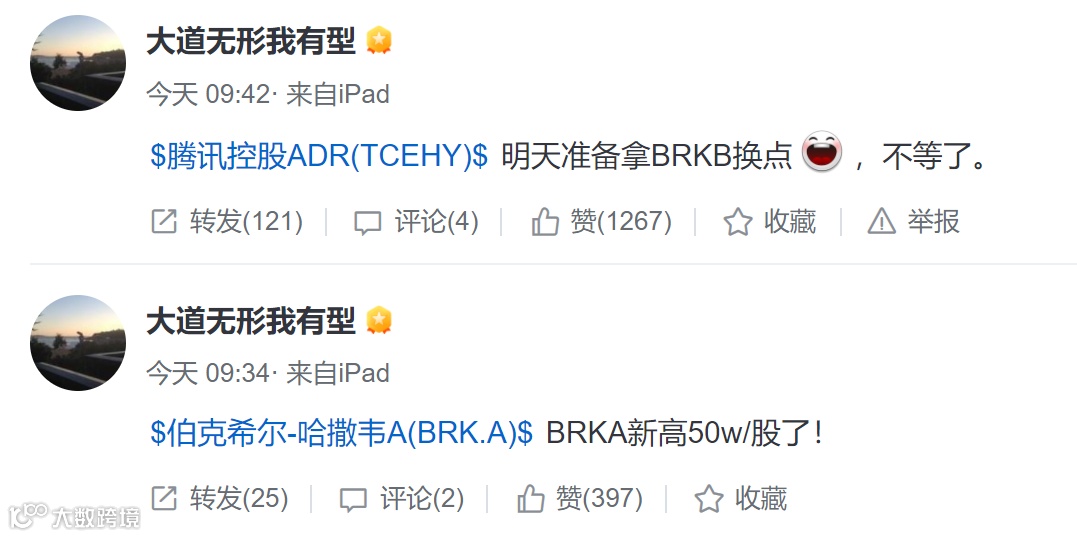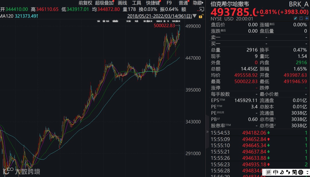 值得注意的是,在腾讯轮番暴跌之时,伯克希尔刚创出新高,股价一度超过50万美元一股。