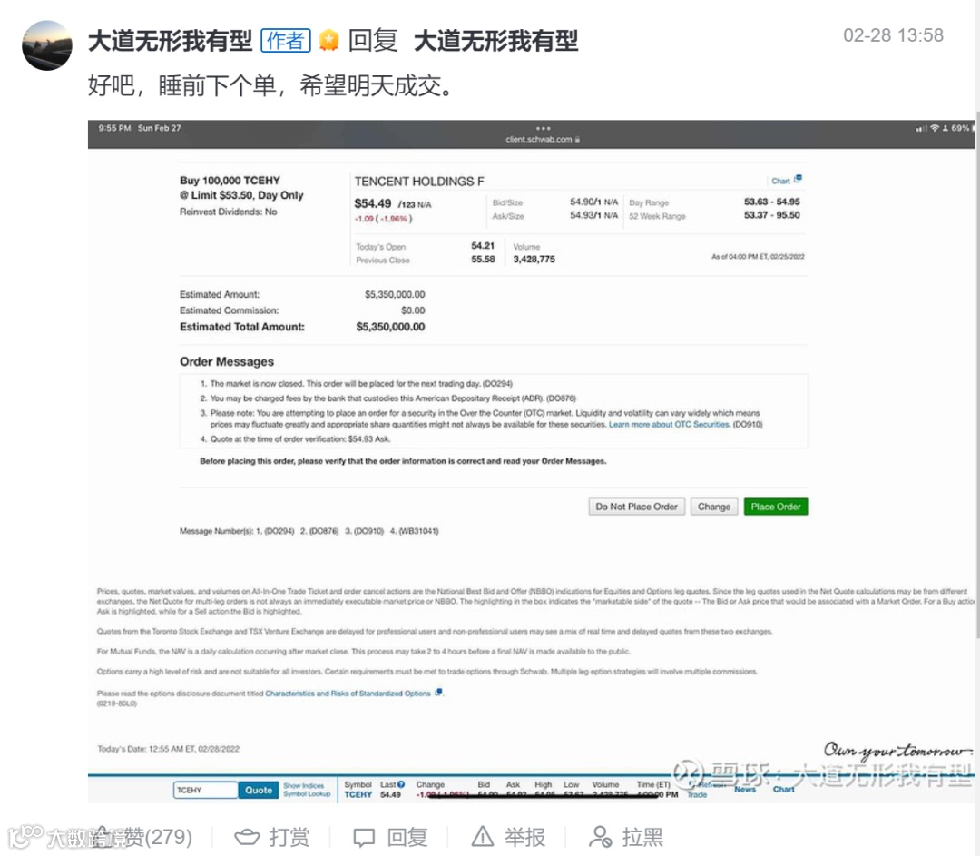 随后,他更是在评论区晒出自己的下单记录,豪掷500多万美元,继去年8月“抄底”腾讯之后,段永平再度抄底。