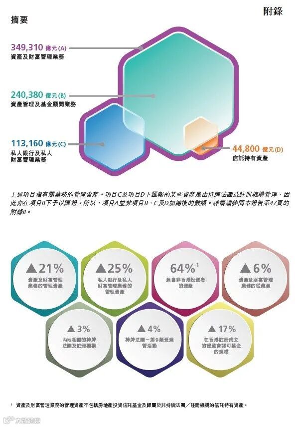 3.非香港投资者持续成为资产及财富管理业务的主要资金来源,占所管理资产的64%。