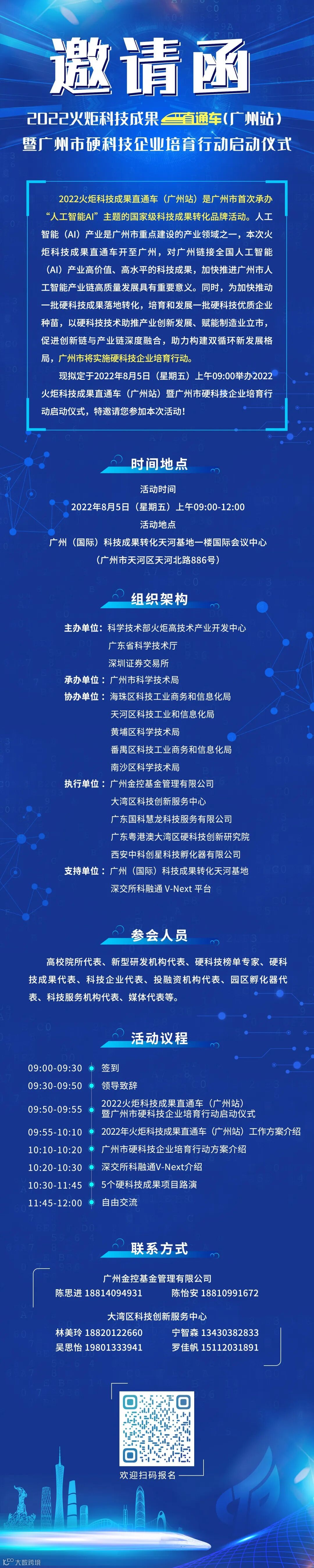 2022火炬科技成果直通车(广州站)暨广州市硬科技企业培育行动将在8月5日正式启动,2022年广州市硬科技企业榜单评选报名也同步火热征集中!