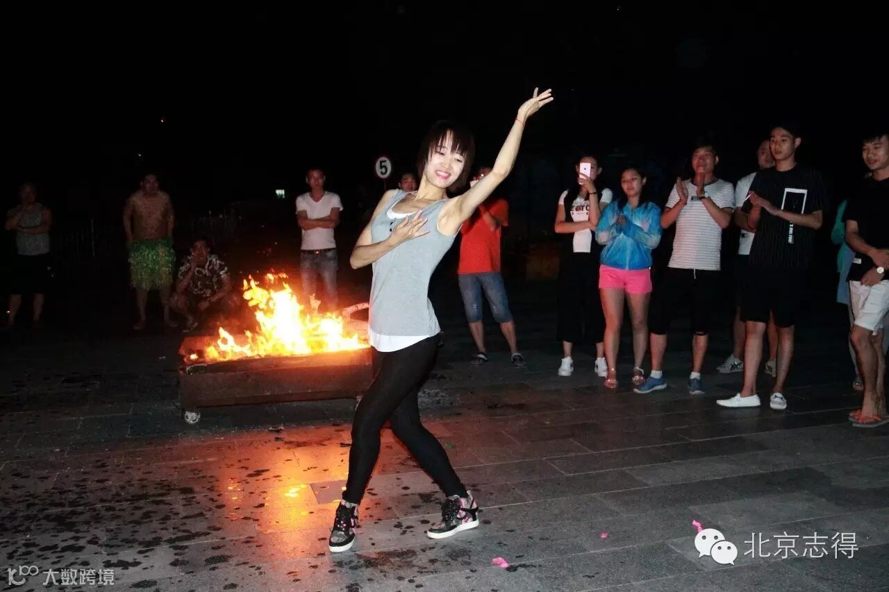 傍晚,享用晚餐后,所有员工齐聚郊外,举办了篝火晚会。晚会上不仅有员工的个人才艺表演,也有集体狂欢式的“兔子舞”,还有令人叹为观止的“时装表演”。虽然经历了下午激烈的项目挑战,但可以看出,每个人对于团建活动的热情仍未减少。