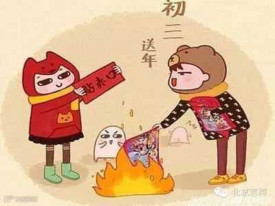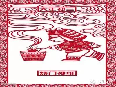 古代的人们到了大年初三这天会把过节的松柏枝及所挂的门神等一起焚化,表示年过完了马上要开始经营生意了。所以有句俗谚说“烧了门神纸,个人寻生理”。