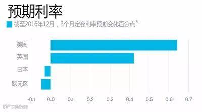 美联储及各国央行仍在维持低息政策以刺激经济增长,那么问题来了,哪个国家能最先证明低息政策的正确性,实现经济迅速增长?2015年12月30日,期货市场操盘手纷纷将资金注入美国:他们期望美元3个月定存利率能在2016年12月结束前升至1.24%,从而赚取0.64个百分点的价差。操盘手们预测,美元利率增长将会高于欧元区、英国及日本。下图是他们的预测: