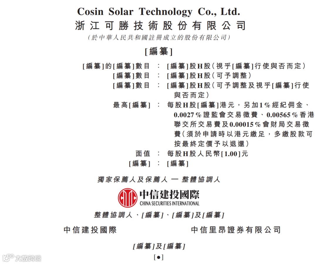 据港交所3月24日披露,浙江可胜技术股份有限公司递表港交所主板,中信建投国际为独家保荐人及整体协调人,中信里昂证券有限公司为整体协调人。