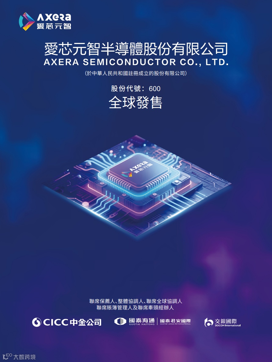 爱芯元智(00600.HK)发布公告,公司拟全球发售约1.05亿股H股,中国香港发售股份1049.16万股,国际发售股份9442.36万股(以上可予重新分配及视乎超额配股权行使与否而定);2026年1月30日至2月5日招股;发售价将为每股发售股份28.20港元,H股的每手买卖单位将为100股,中金公司、国泰君安国际及交银国际为联席保荐人;预期H股将于2026年2月10日开始于联交所买卖。