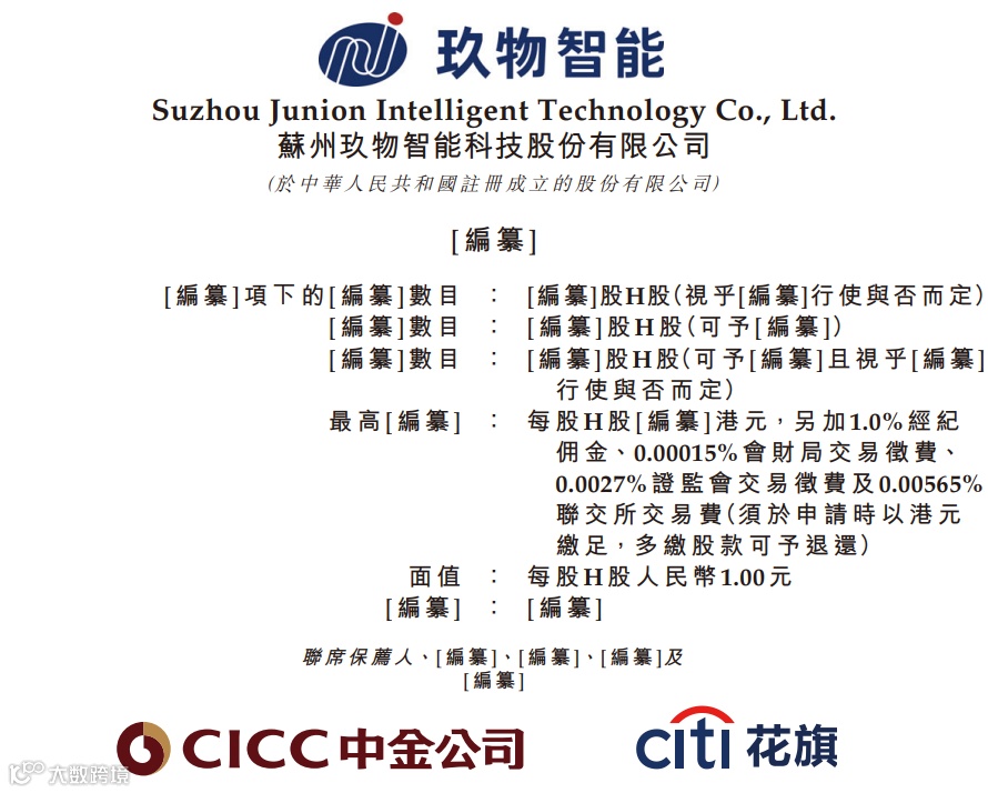 据港交所1月19日披露,苏州玖物智能科技股份有限公司向港交所主板递交上市申请,中金公司、花旗为联席保荐人。