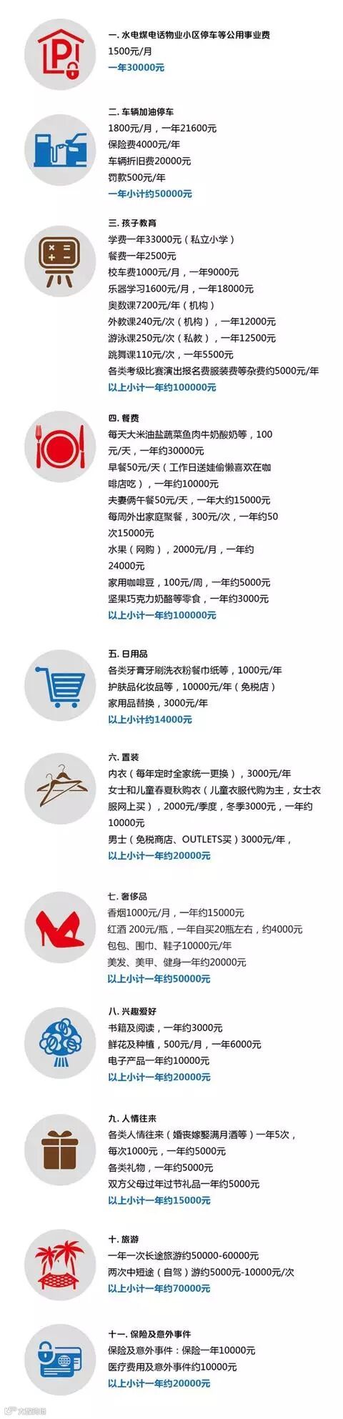 我们目前的家庭收入税前大约为75-80万。除去税金养老金各种金,大约25-30万,所以到手差不多是50万上下。开支如下: