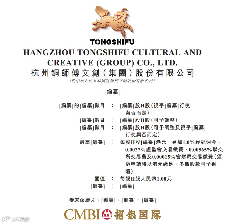 据港交所11月11日披露,杭州铜师傅文创(集团)股份有限公司向港交所主板提交上市申请,招银国际为独家保荐人。