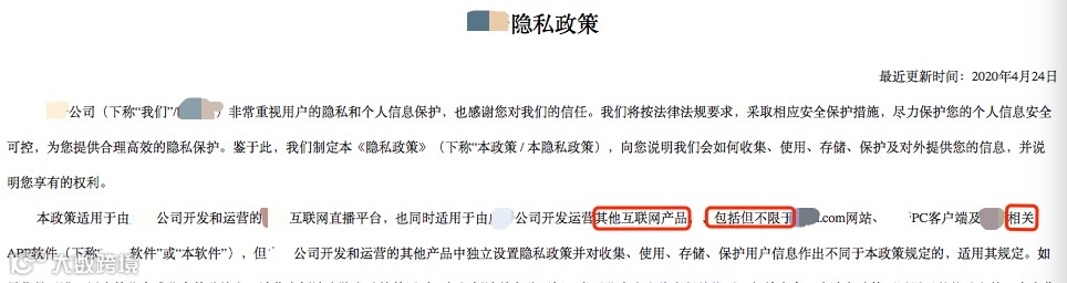 1.应当明确隐私政策适用产品或服务的具体范围,不应以“等”“包括但不限于”等模糊用语扩大适用范围。