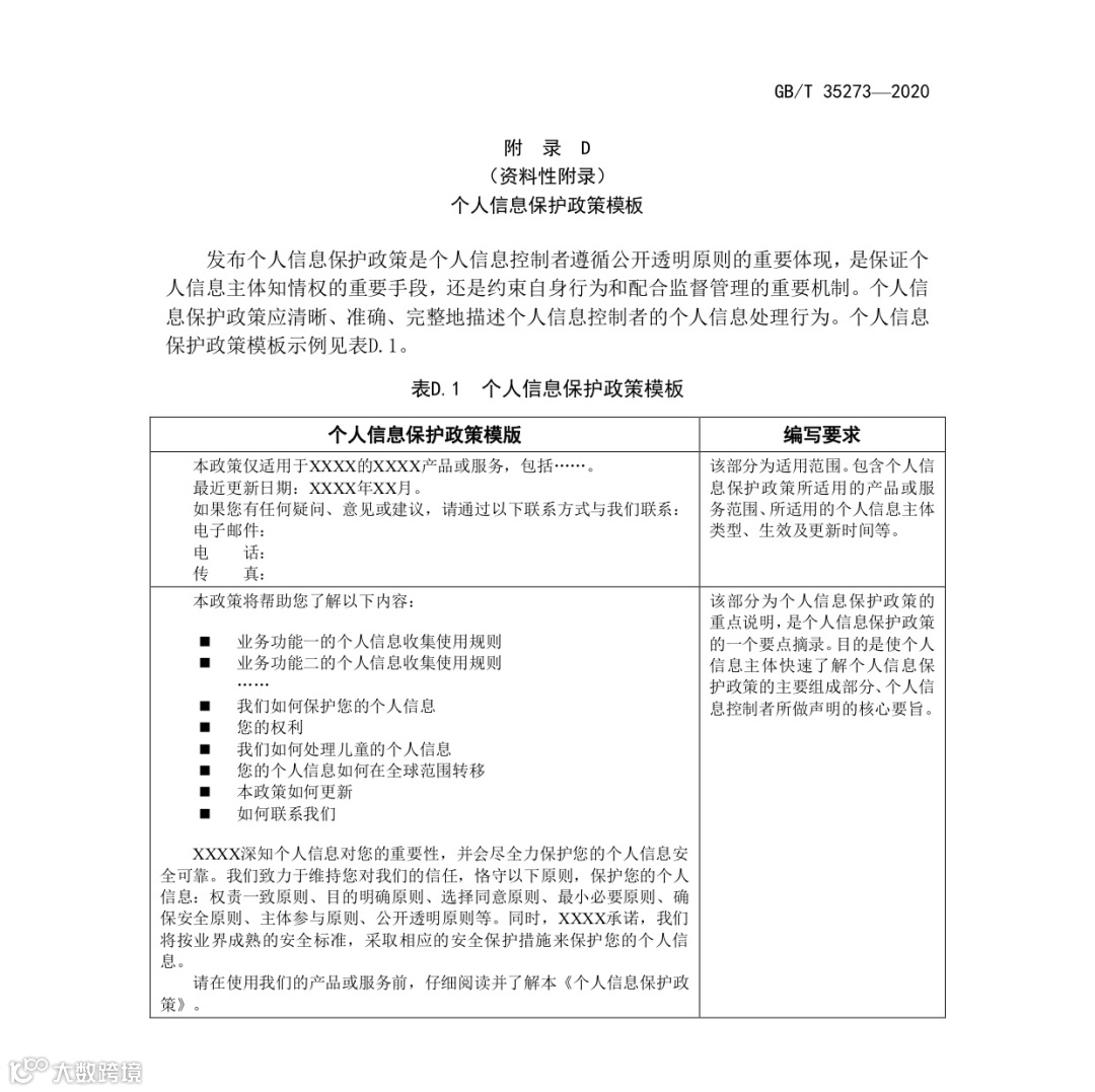 [5] 全国信息安全标准化技术委员会组织制定的《信息安全技术 个人信息安全规范》(GB/T35273-2020),2020年10月1日起实施。