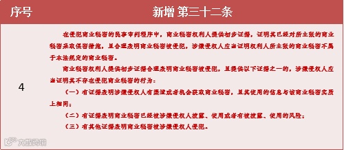 由权利人证明其商业信息具有“秘密性”特征,难度较大。本次修订将商业秘密的举证责任进行上述合理分配,权利人不再需要证明其商业信息属于商业秘密,大幅降低了其举证成本。