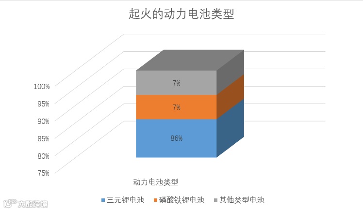 《报告》显示,起火时,86%的车辆为三元锂电池,7%的车辆为磷酸铁锂电池,7%的车辆为其他电池类型。