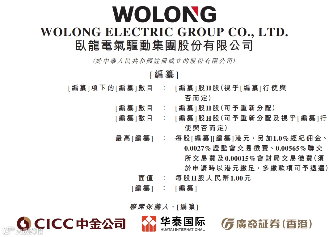 据港交所8月13日披露,卧龙电气驱动集团股份有限公司递表港交所主板,中金公司、华泰国际、广发证券(香港)为联席保荐人。