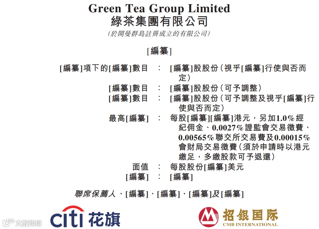 据港交所4月23日披露,绿茶集团有限公司通过港交所主板上市聆讯,花旗、招银国际为联席保荐人。