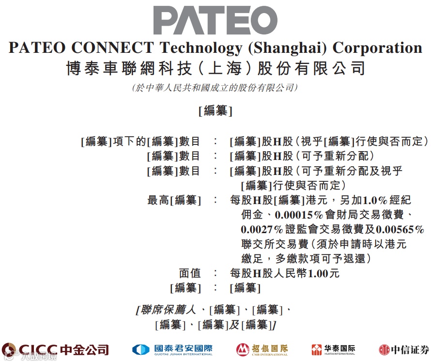 据港交所近日披露,博泰车联网科技(上海)股份有限公司向港交所主板提交上市申请,中金公司、国泰君安国际、招银国际、华泰国际、中信证券为联席保荐人。