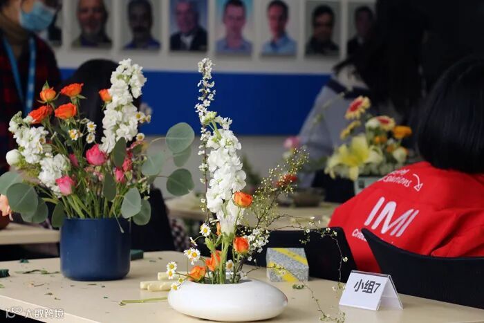 经过两个小时的努力,造型各异的插花作品在大家的手中诞生了。简约飘逸的东方风韵与华丽丰腴的西方格调各有特色,其中不乏“势”与“视”兼备的佳作。