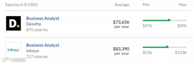 根据Glassdoor数据,Businees Analyst在美国的平均年薪已经超过7万刀。