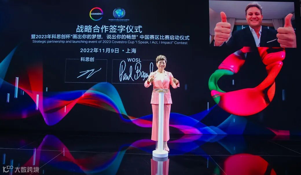 科思创中国区总裁雷焕丽与WOSL首席执行官Paul Bogaardt博士(线上)代表双方签约