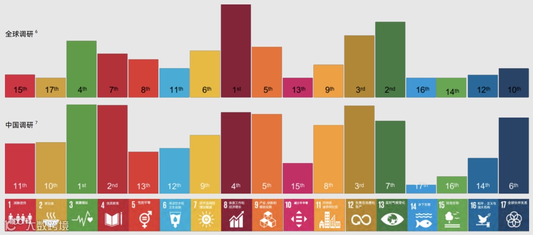与全球调研数据不同,健康福祉与教育,负责任的消费与生产、创新和经济成长是国内关注度较高的可持续发展目标。