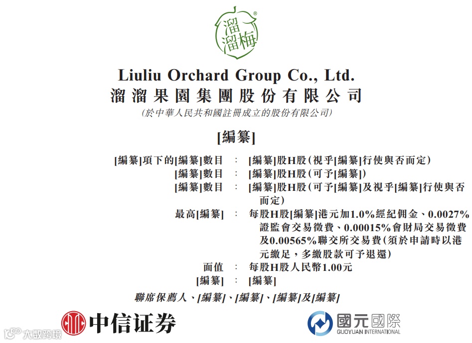 据港交所4月16日披露,溜溜果园集团股份有限公司向港交所主板提交上市申请书,中信证券、国元国际为联席保荐人。
