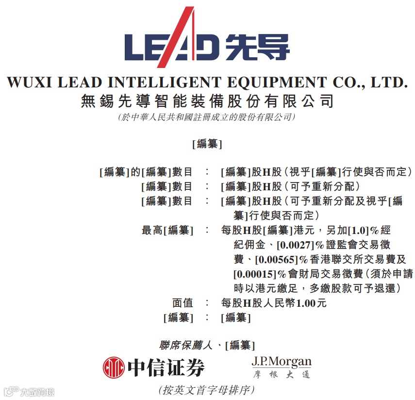 据港交所2月25日披露,无锡先导智能装备股份有限公司递表港交所主板,中信证券、摩根大通为联席保荐人。