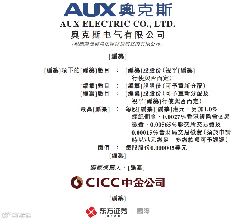 7月16日,奥克斯电气有限公司向港交所主板提交上市申请书,中金公司为独家保荐人。