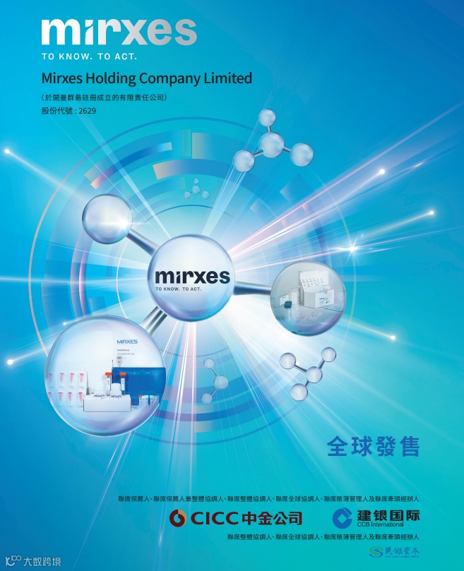 MIRXES-B(02629.HK)发布公告,公司拟全球发售4662万股股份,中国香港发售股份466.2万股,国际发售股份4195.8万股;2025年5月15日至5月20日招股;发售价将为每股发售股份23.30港元,中金公司及建银国际为联席保荐人;预期股份将于2025年5月23日开始在联交所买卖。