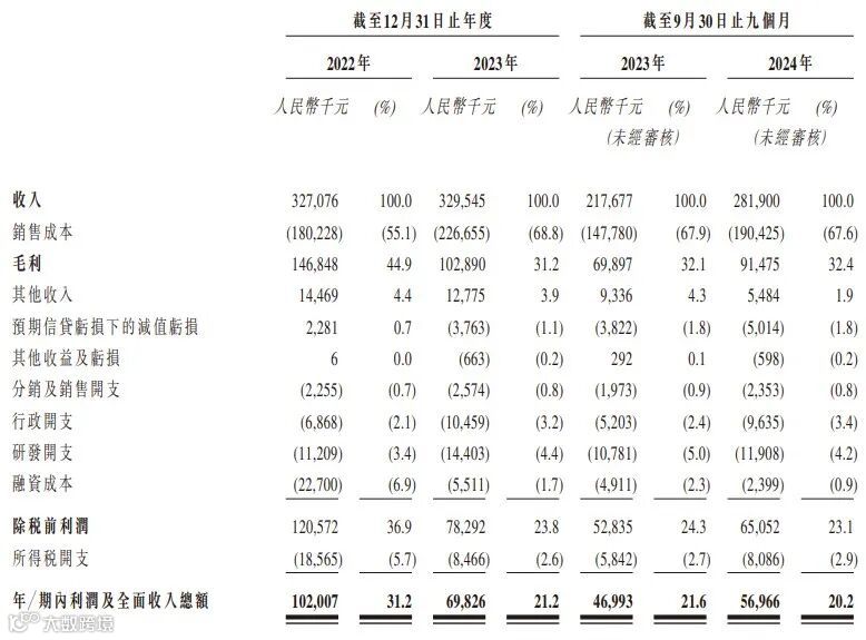 财务方面:截止2023年12月31日,收入从2022年同期的人民币3.271亿元增长到3.295亿元,同比增长约为0.75%;截至2024年9月30日止九个月,收入从2023年同期的2.177亿元增长到2.819亿元,同比增长约29.5%。