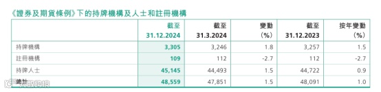 2024年,香港证监会收到8261份牌照申请,较上年增长了15%。截至2024年底,香港持牌机构达到3305家,持牌人士达到4.51万名,注册机构达到109家。