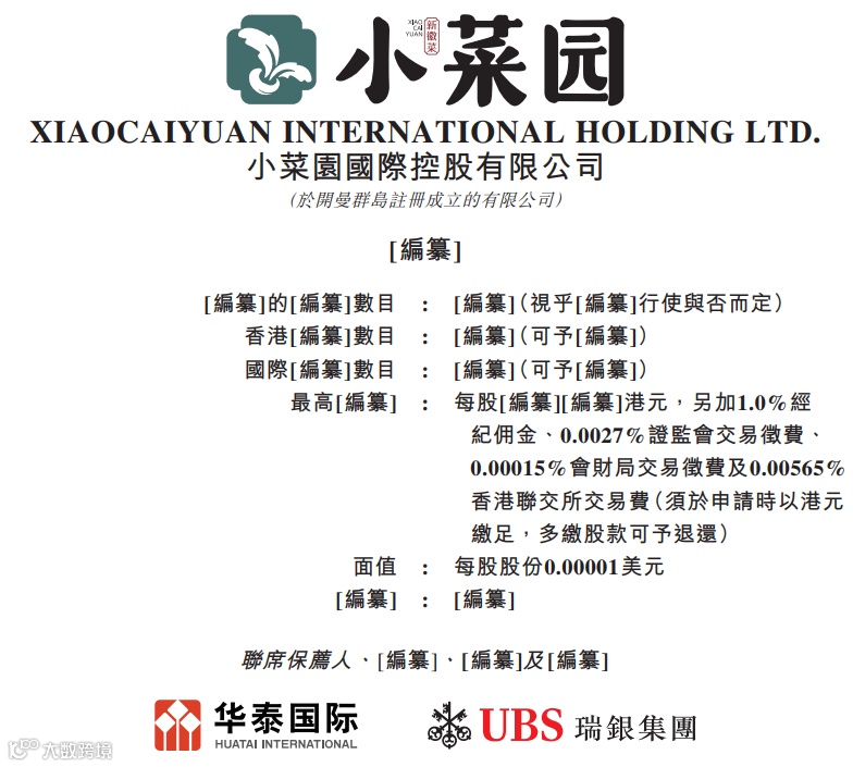 据港交所12月4日披露,小菜园国际控股有限公司通过港交所聆讯,华泰国际、瑞银集团为联席保荐人。