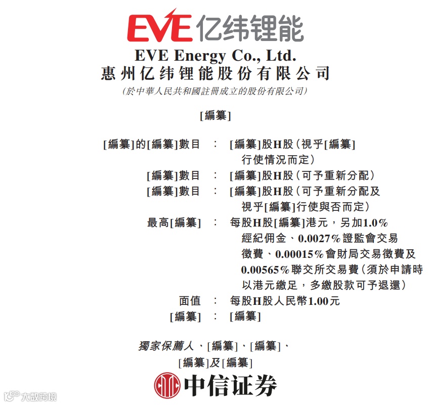 据港交所近日披露,惠州亿纬锂能股份有限公司(300014.SZ)向港交所主板递交上市申请,中信证券为独家保荐人。