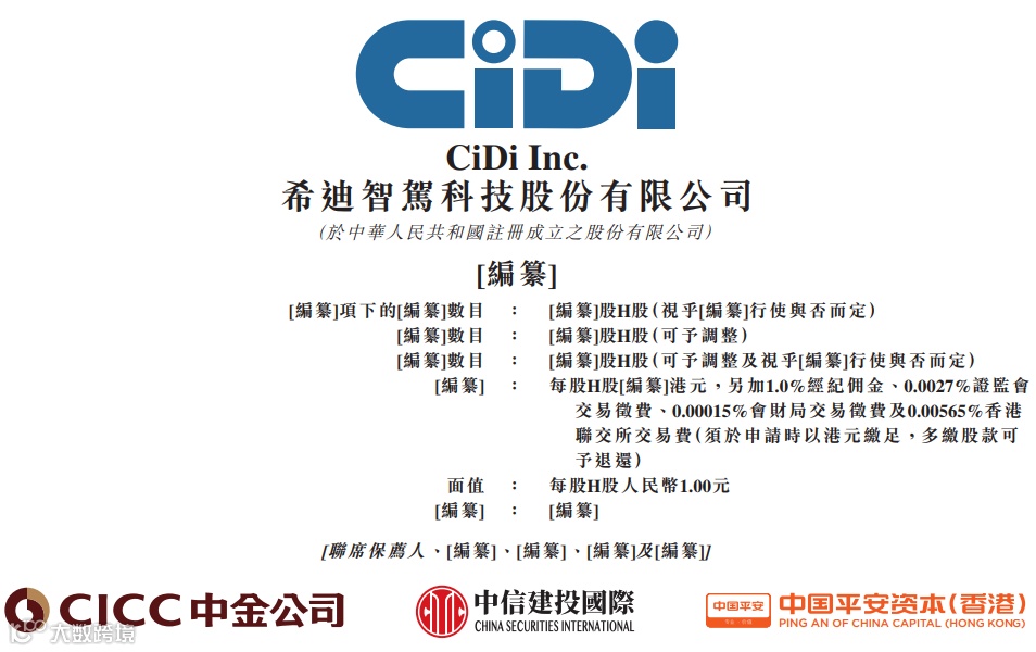 据港交所5月8日披露,希迪智驾科技股份有限公司(CiDi Inc.)向港交所主板递交上市申请,中金公司、中信建投国际、中国平安资本(香港)为联席保荐人。