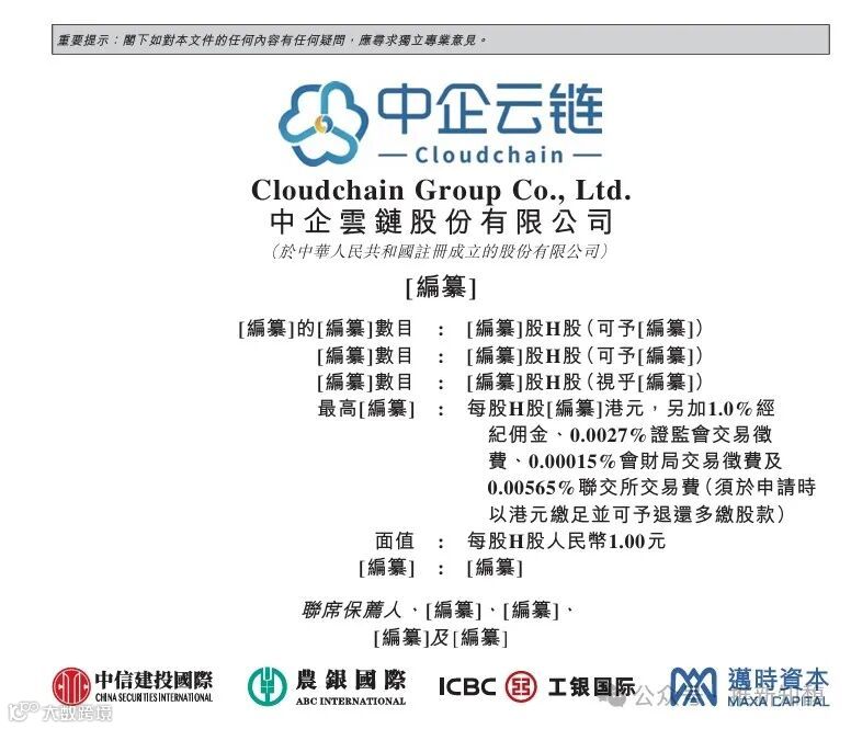 据港交所5月6日披露,中企云链股份有限公司("中企云链")向港交所提交上市申请书,联席保荐人为中信建投国际、农银国际、工银国际、迈时资本,申报会计师为毕马威会计师事务所。公司曾于2023年10月18日递表。