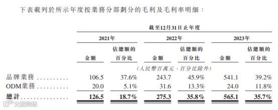 财务数据方面,品牌业务毛利随着收益增长大幅增加,由2021年的人民币106.5百万元增至2022年的人民币243.7百万元,再进一步增至2023年的人民币541.1百万元。