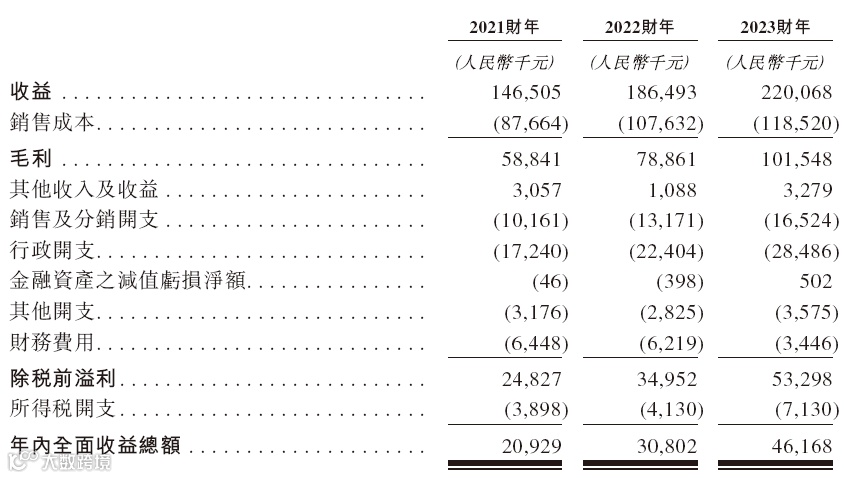招股书显示,在过去的2021年、2022年和2023年,宇航人的营业收入分别为人民币1.47亿、1.86亿和2.20亿元,相应的净利润分别为人民币2092.9万、3080.2万和4616.8万元。
