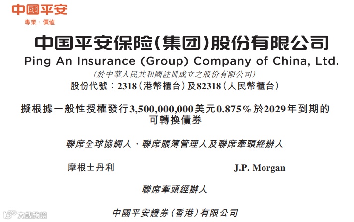 摩根士丹利、摩根大通、中国平安证券为此次可换股债券经办人。