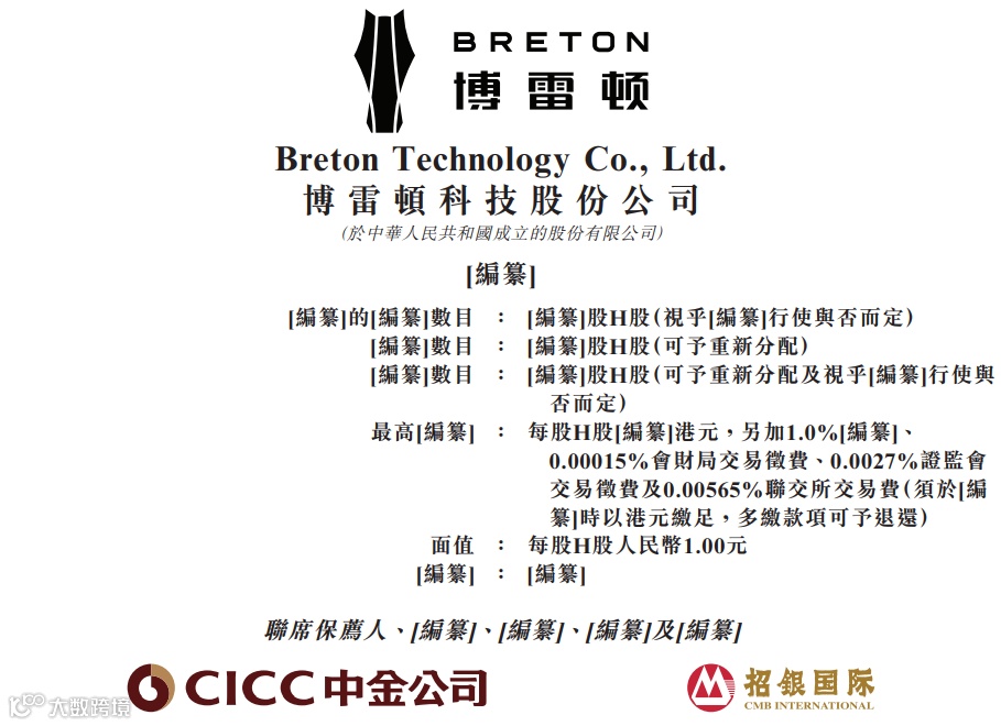 据港交所近日披露,博雷顿科技股份公司向港交所主板递交上市申请,中金公司、招银国际担任联席保荐人。
