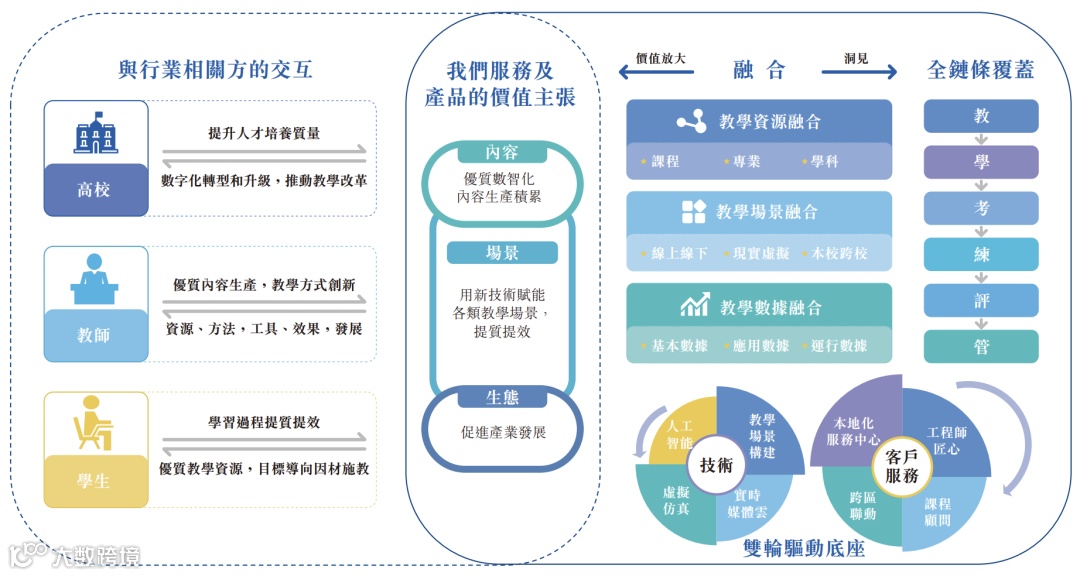 招股书显示,智慧树自2008年成立以来,一直致力于高校数字化教育内容、数字化教学场景服务及产品的开发、交付和运营;其产品服务覆盖了教学的各个环节,包括教、学、练、考、评、管等,全面推动了高等教育教学的数字化转型。