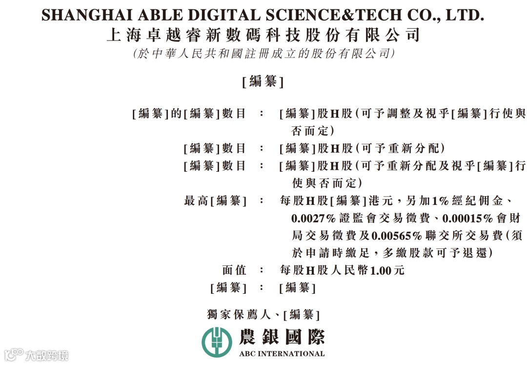 据港交所近日披露,上海卓越睿新数码科技股份有限公司向港交所递交上市申请,农银国际为独家保荐人。
